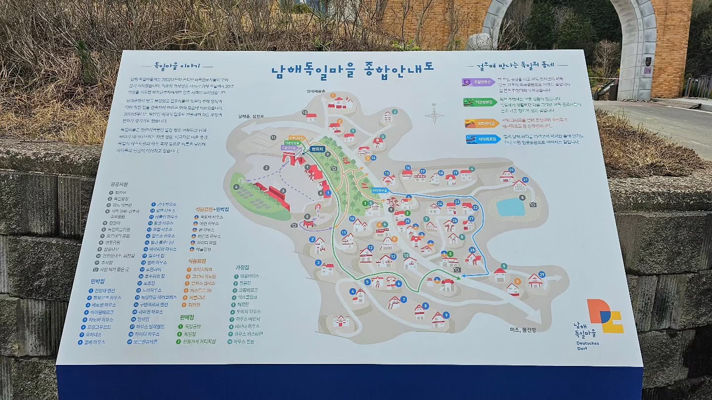 1960년 독일에 파견 되어 한국 경제 발전에 기여한 독일 거주 교포들의 정착촌으로, 마을의 모든 주택이 독일식으로 지어져 이국적 풍경을 자아내고 있으며 남해 파독전시관 에서는 파독 광부'간호사의 삶의 흔적을 느낄수 있다.
