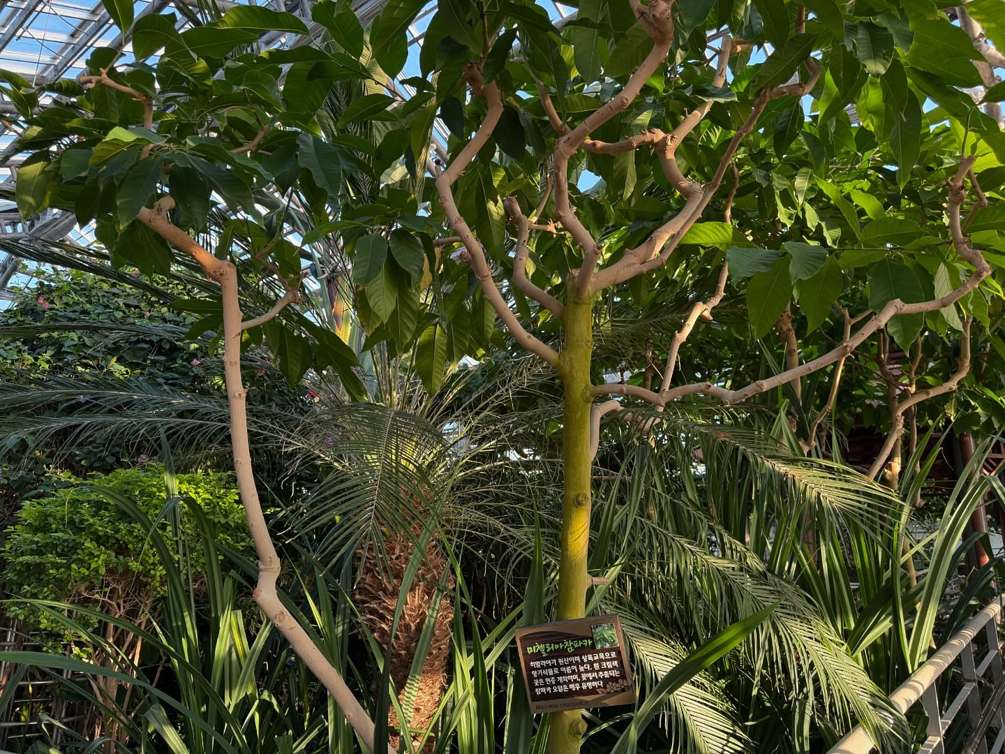 열대, 아열대 과일나무를 전시하여 이국 적인 남국의 상큼한 정취를 느낄 수 있 도록 조성한 곳입니다. 열대과수 하면 대표적으로 생각나는 바나 나, 망고, 파파이야, 올리브, 커피, 망고 스틴, 잭후르츠, 가람보라 등의 열대과수 를 볼 수 있습니다.