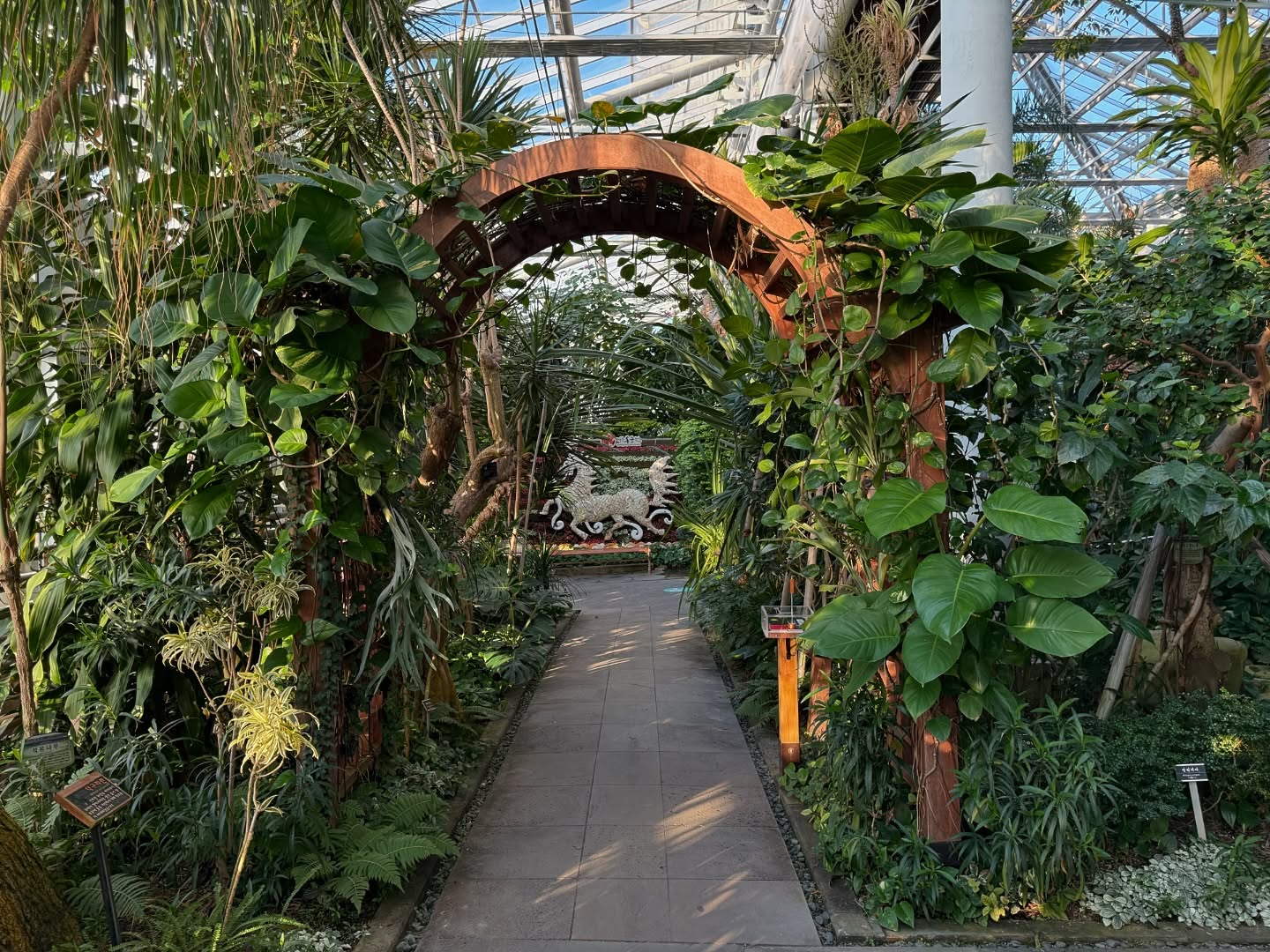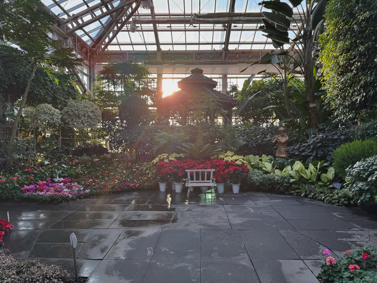 사계절 푸른잎과 아름다운 꽃들을 감상할 수 있는 공간입니다. 화목원은 향기원, 암석원, 행잉가든으로 조성되어 있습니다. 향기원에서는 사계목서, 오렌지 제사민, 다투라 등과 같은 짙은 향기를 맡을 수 있는 식물들을 만날 수 있으며, 암석원에서는 아름다운 꽃을 피우는 난과 암석이 어우러진 경관을 관람하실 수 있습니다. 행잉가든에서는 내 머리 위에서 폭포처럼 떨어지는 꽃들의 아름다움을 느낄 수 있습니다.