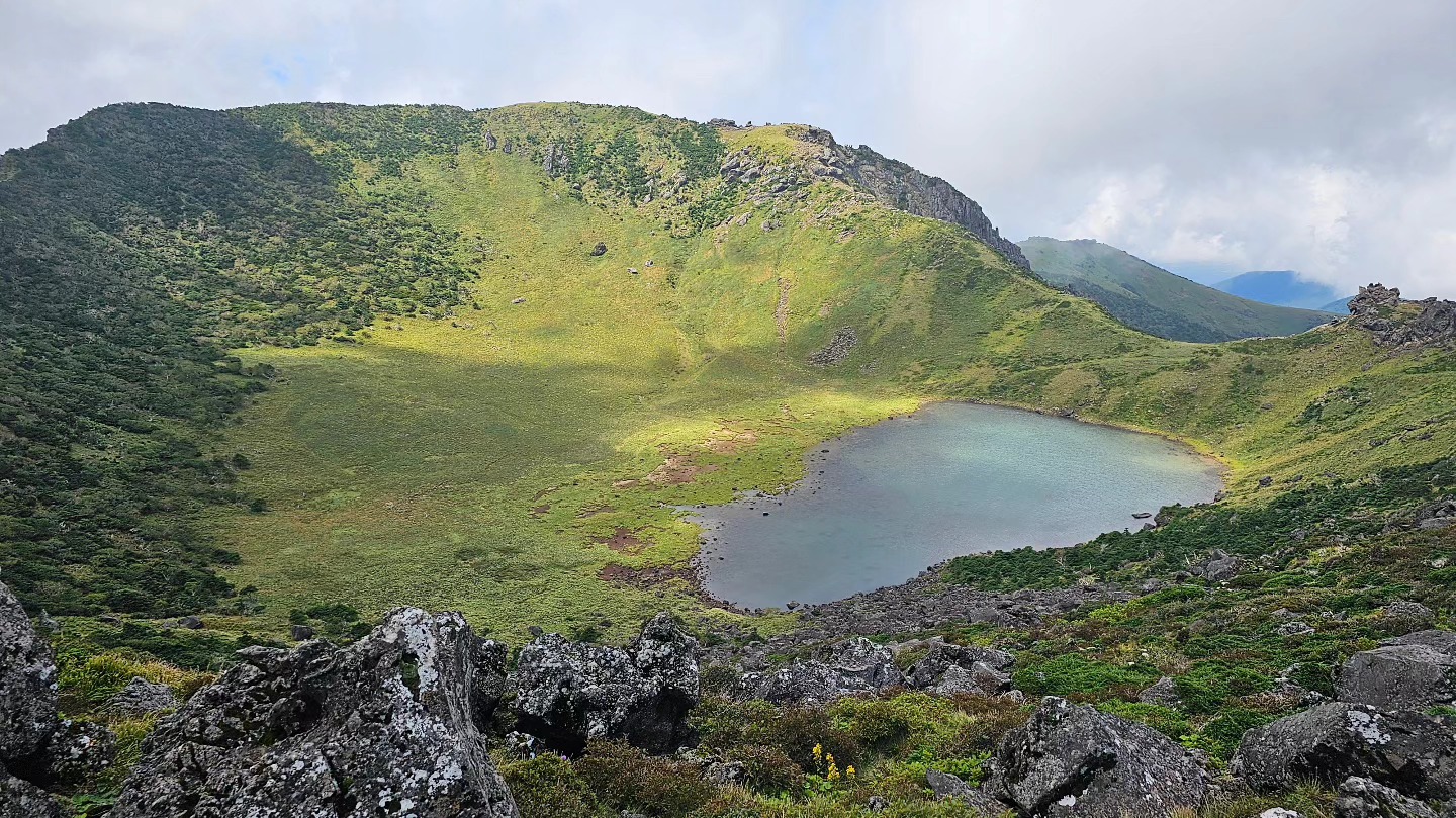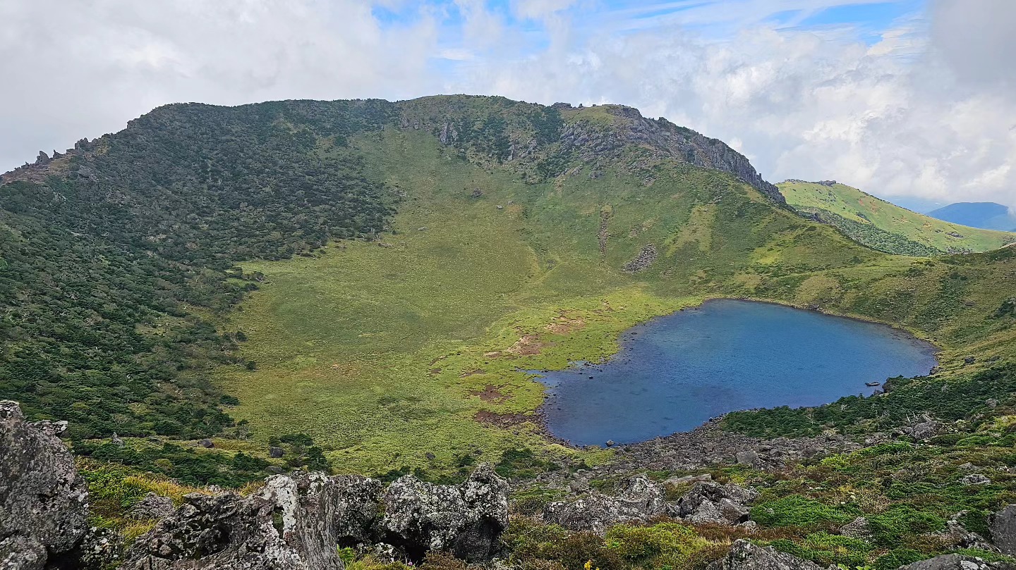 맑은 날엔 분화구 안에 고인 물이 ‘백록담(白鹿潭)’이라는 이름처럼 고요하고 신비롭게 반짝여요.