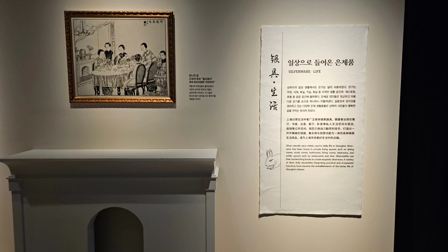 이번 전시는 단순히 은의 물리적 특성과 사용을 넘어서, 문화적 맥락에서도 깊이 있는 이야기를 다루고 있습니다. 특히 근대 상하이의 발전된 경제와 문화적 융합을 중심으로 전개되었습니다. 19세기 후반에서 20세기 초반까지 상하이는 서양 문화와 중국 문화가 서로 융합하며 해파문화라는 독특한 지역 문화를 형성하였고, 이 과정에서 은기의 사용이 중요하게 자리 잡았습니다. 상하이의 일상 생활에서도 은기는 주방, 서재, 욕실, 거실, 침실 등 사적 공간 뿐만 아니라, 레스토랑과 호텔 같은 공공 공간에서도 광범위하게 사용되었습니다. 은기 장인들은 정교하고 아름다운 세공을 통해 은을 실용적인 생활용품과 장식적인 요소로 융합하여, 장식성과 실용성을 모두 만족시키는 다양한 은재 생활용품을 만들어냈습니다. 이런 은기들은 상하이의 사회적·문화적 발전을 엿볼 수 있는 중요한 지표가 되었습니다.