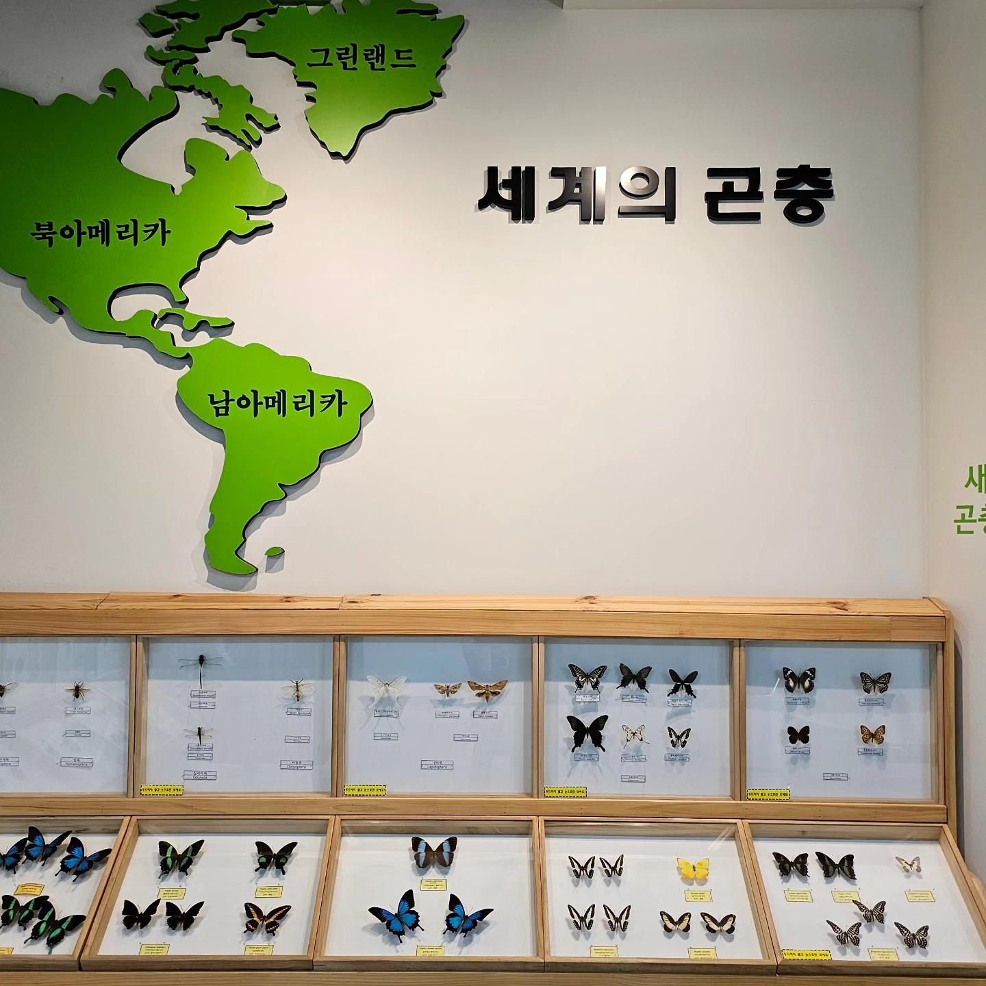 1층에는 곤충의 눈, 입, 호흡 방식 등에 대한 과학적 설명이 이어집니다.