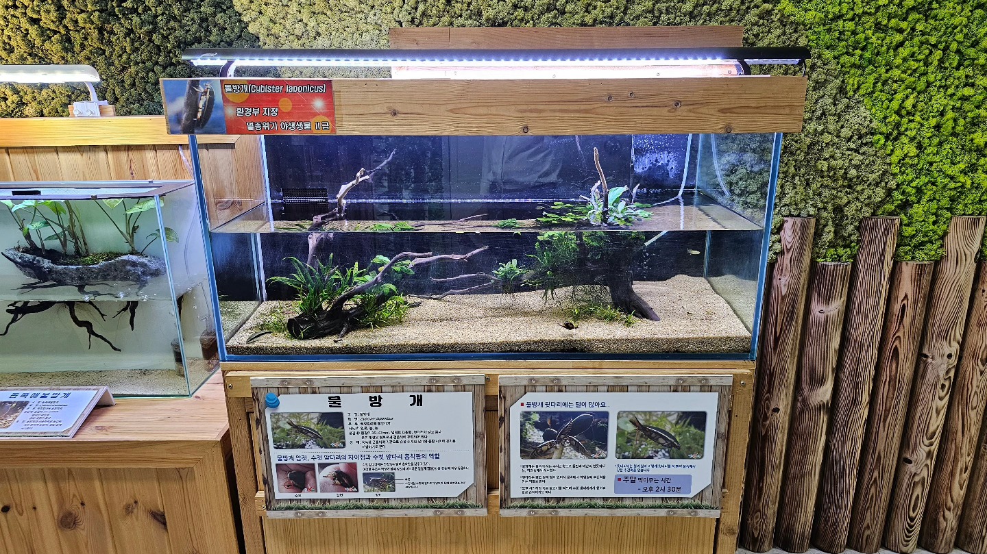 물장군, 물자라, 장구애비, 애반딧불이의 애벌레 등 수서곤충도 전시되어 있습니다. 이들은 하천 생태계 건강을 판단하는 지표종으로, 물과 생명, 환경의 순환 고리를 연결해줍니다.
