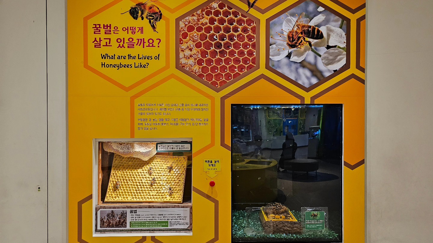 전시관 한쪽에서는 꿀벌의 생태계와 개미 사회의 계급 구조도 소개됩니다.