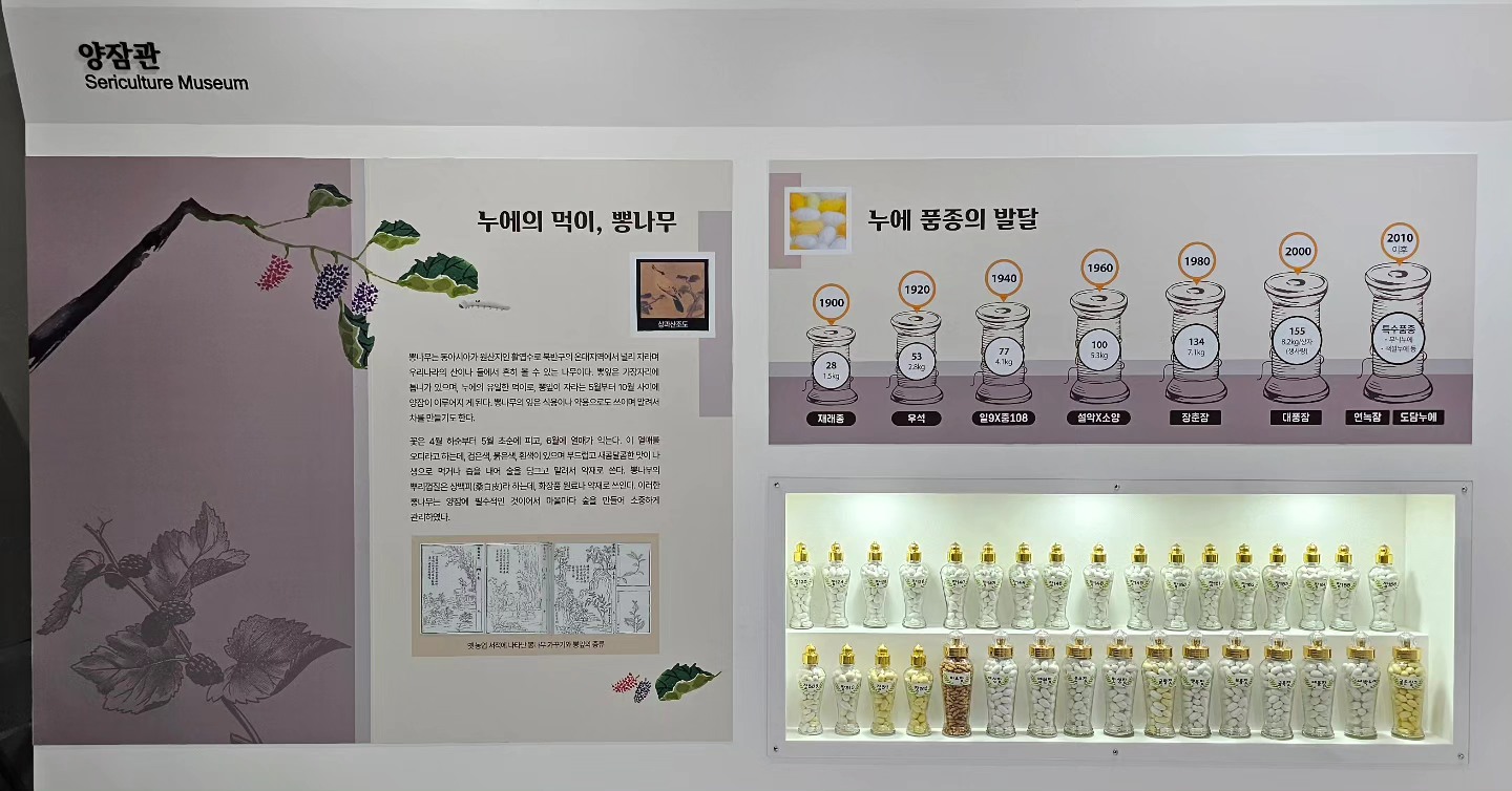 박물관 한편에서는 천연염색과 누에고치의 실에 대한 정보도 만나볼 수 있었습니다.