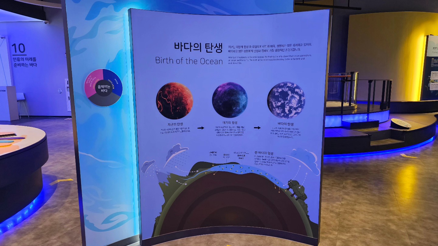 국립해양과학관은 단순한 전시 공간이 아닙니다. 여기엔 우리가 살아가는 지구의 절반, 바다가 있습니다. Zone 1부터 Zone 10까지 이어지는 전시관은 지구상의 물, 생명, 생태, 에너지, 그리고 인류의 미래까지 바다와 연결된 모든 삶의 구조를 드러내 줍니다. 전시관은 이렇게 구성되어 있습니다: 오션플랫폼–오션홀–생명의 바다–미지의 바다–인류의 일상–지구의 역동성–미래의 바다까지. 그 흐름만 보아도 바다의 스케일은 ‘넓다’는 말로는 부족합니다. **‘인류의 거울’**이라고 말해야 할지도 모르겠습니다.
