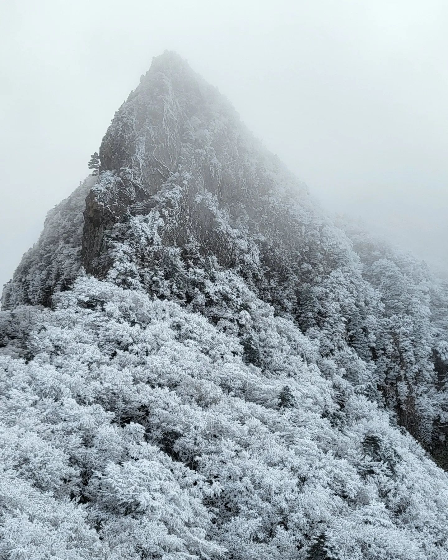 하얀 눈으로 덮인 한라산은 정말이지, 그 자체로 예술 작품 같았습니다.