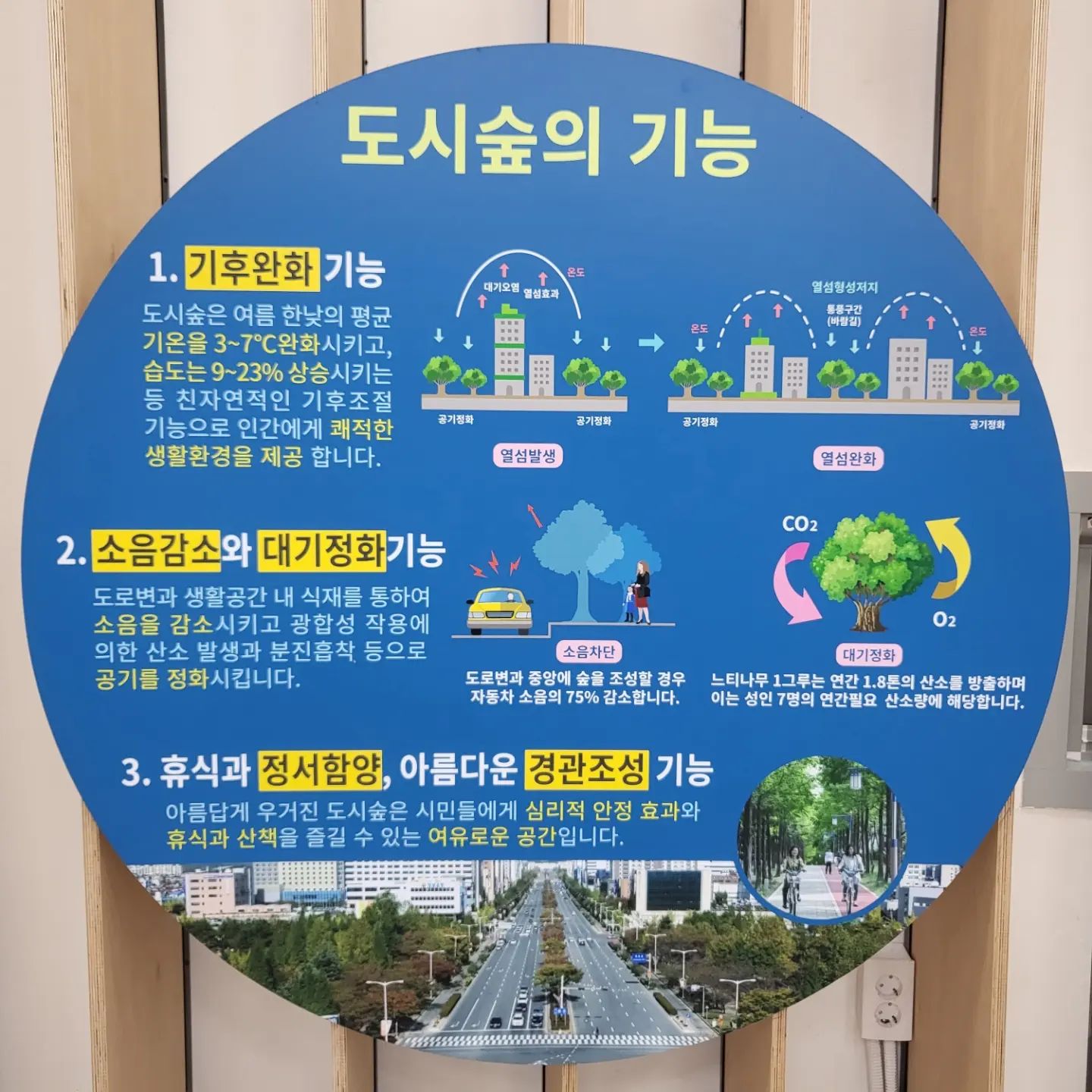 숲은 대기 중 이산화탄소를 흡수하고 산소를 방출하며, 인류와 지구의 생명을 지탱합니다. 광합성을 통해 생산된 산소는 다양한 생물들이 살아가는 기반이 되었고, 특히 호흡으로 생명을 유지하는 동물들과 인간에게 없어서는 안 될 소중한 자원입니다. 이러한 숲의 기능은 특히 인구 밀집 지역에서 중요합니다. 도심 속 공기 질이 나빠지면 호흡기 질환이 증가하고, 삶의 질이 떨어집니다. 수목원과 도시숲은 그러한 문제를 완화시키는 자연 정화 장치 역할을 수행합니다.