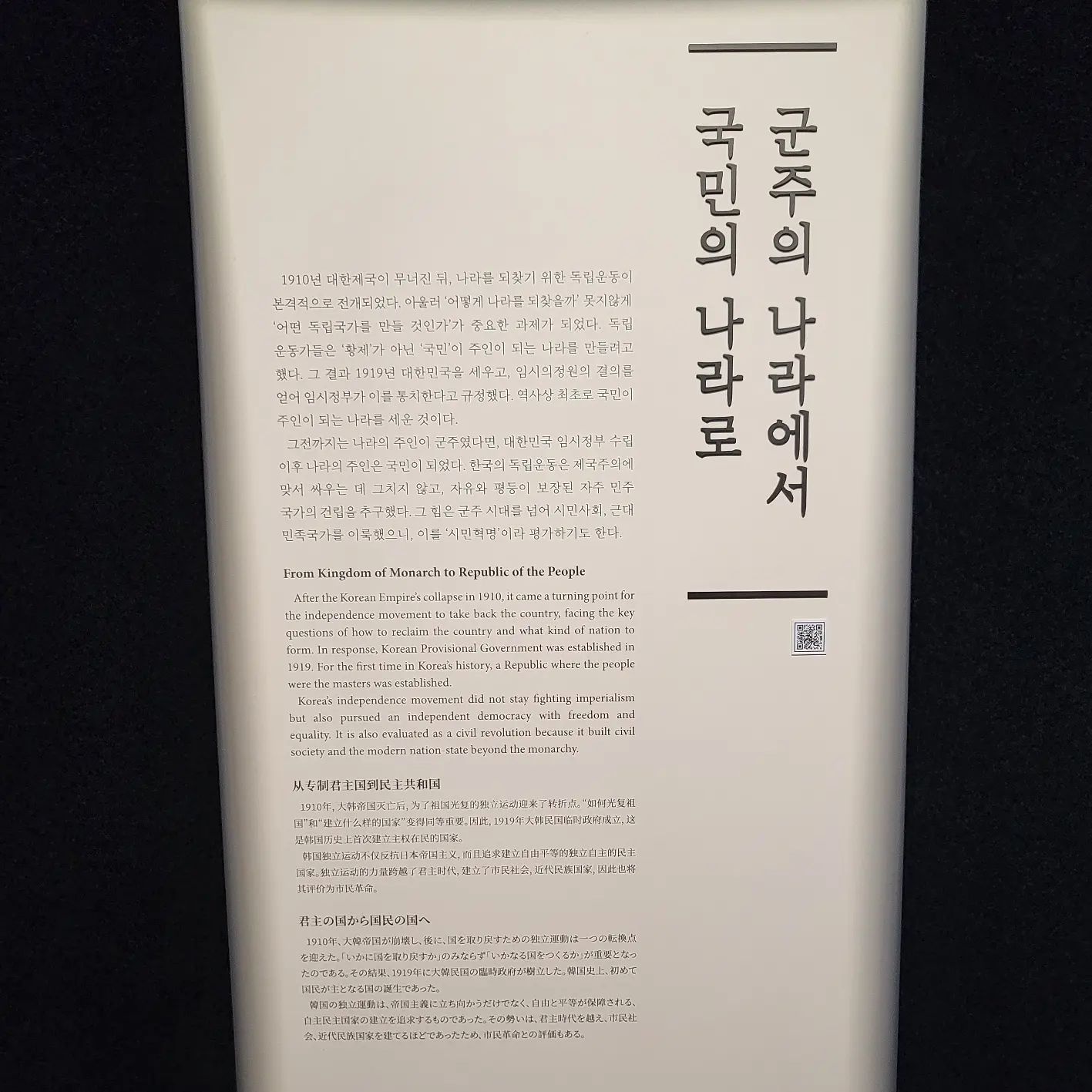 1. 상설전시 1관 – 군주의 나라에서 국민의 나라로