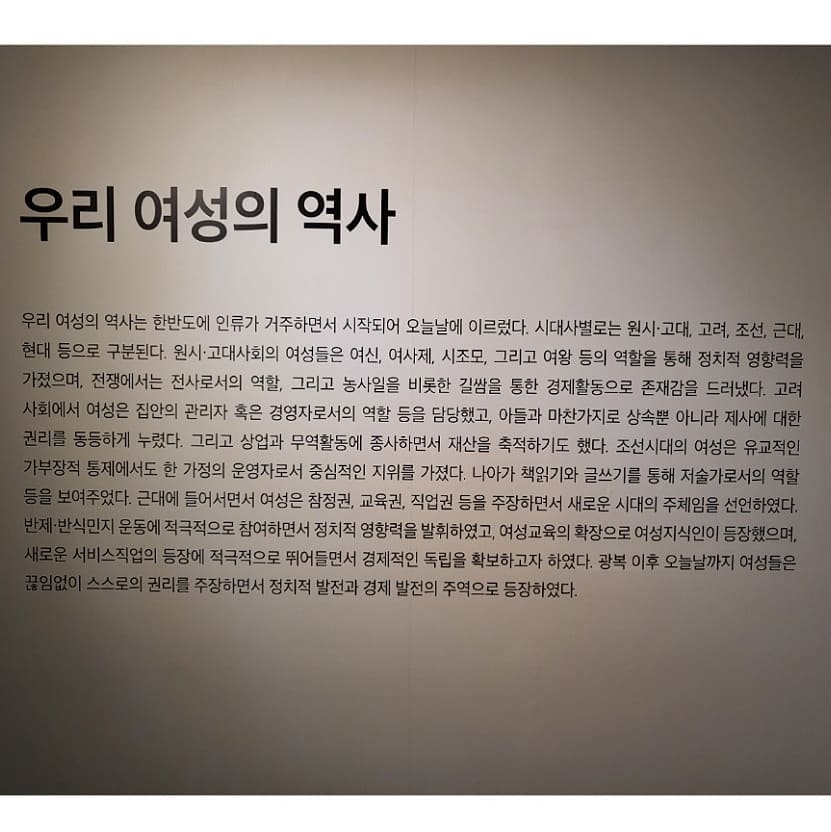 국립여성사전시관은 여성이 역사 속에서 어떻게 살아왔는지, 어떤 방식으로 변화와 저항을 이끌어왔는지를 생생하게 보여줍니다.
