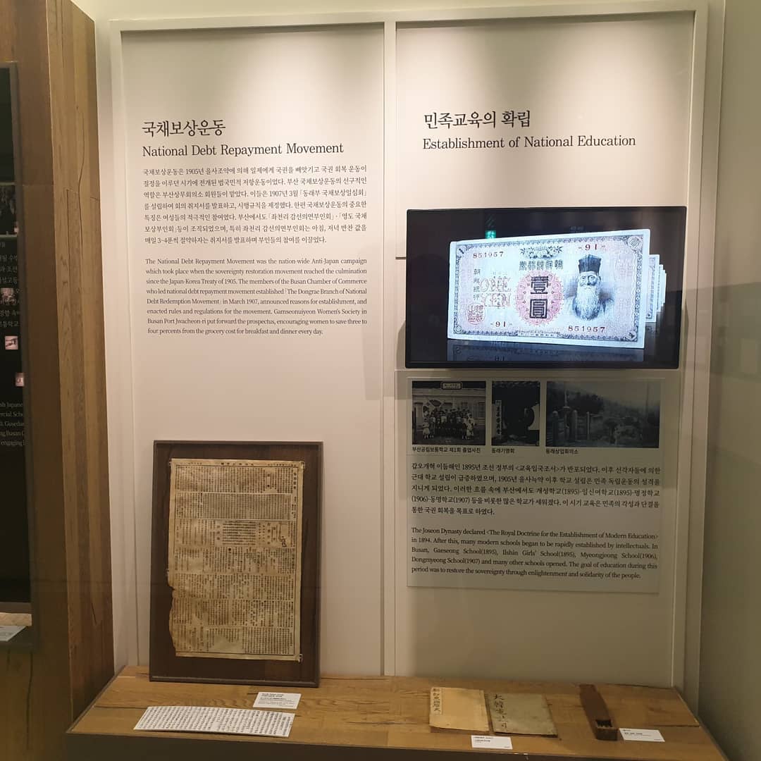 - 국채보상운동: 일제가 강요한 차관을 국민의 손으로 갚자는 이 운동은 대구에서 시작됐지만 부산도 큰 역할을 했다. 이 운동은 국민 스스로 나라를 지키고자 한 최초의 민족적 자각 운동이다.