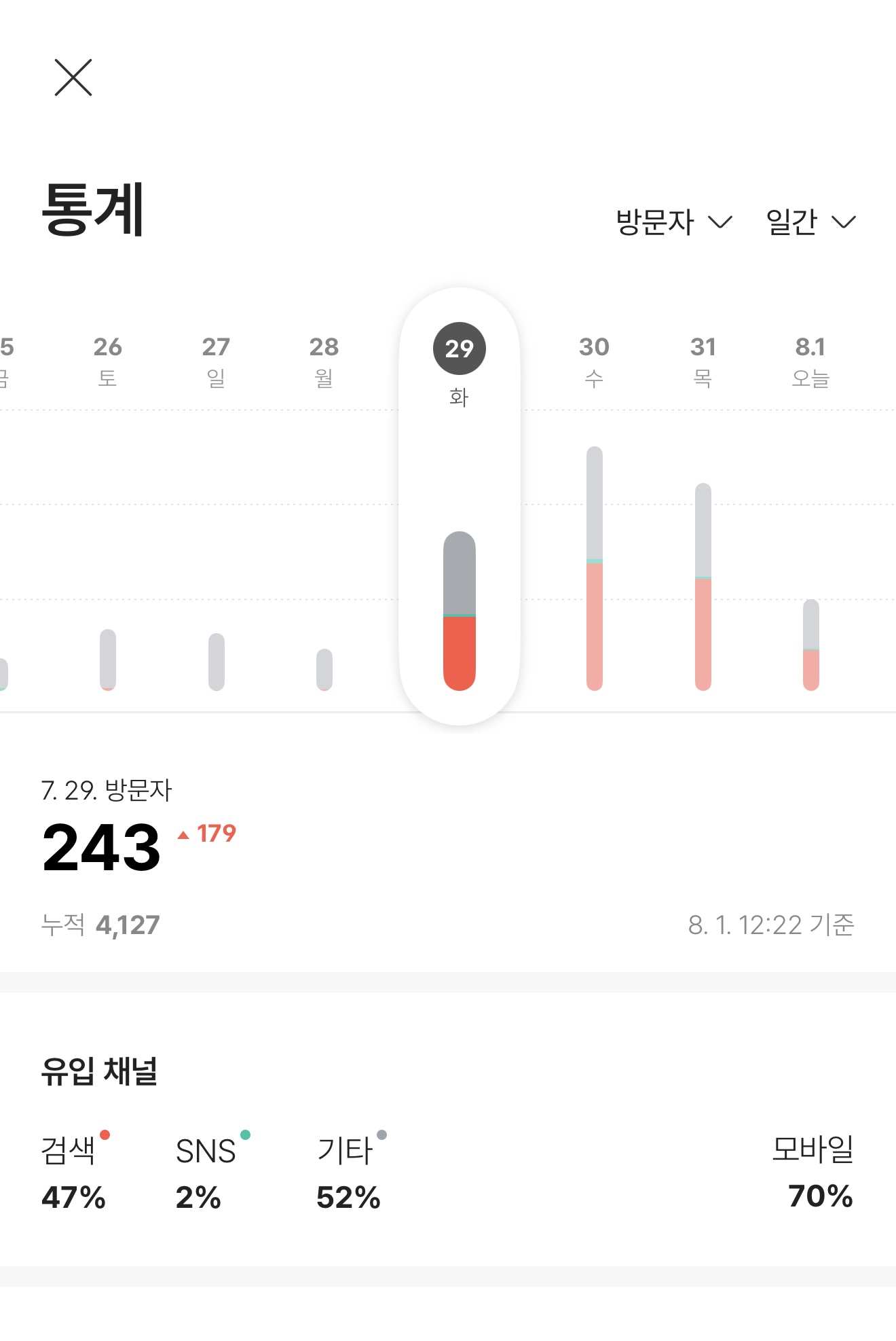 검색 유입, 모바일 비중, 시간대, 포스트 주제 등을 분석하면 다음 글의 전략을 조금 더 똑똑하게 세울 수 있습니다.