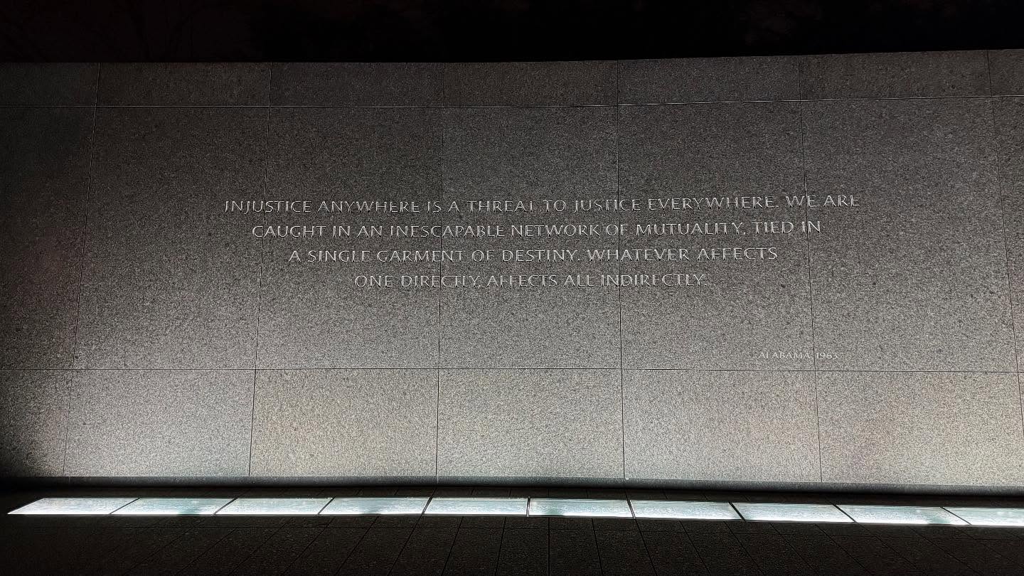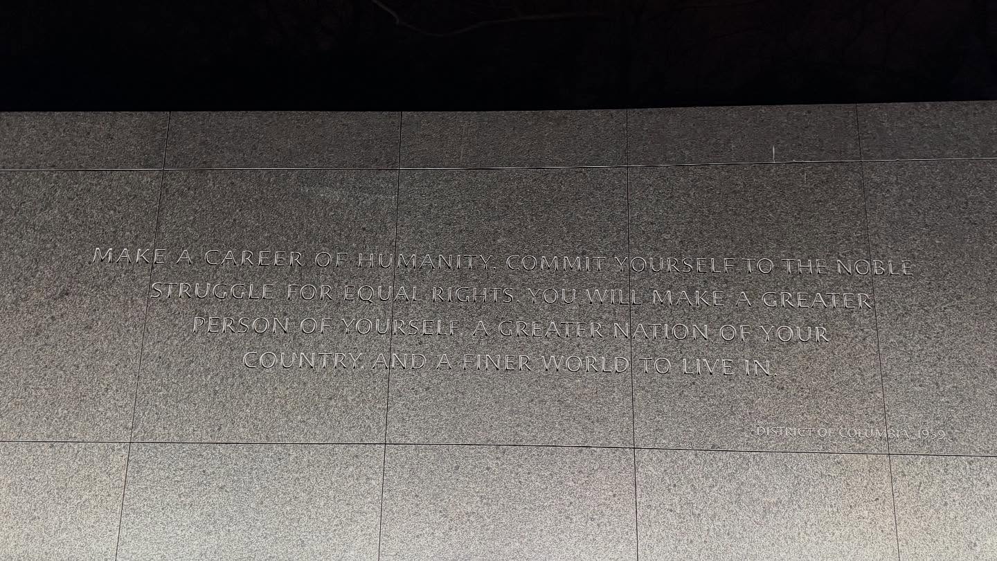 기념관에는 킹 목사의 명언이 여러 언어와 함께 새겨져 있습니다. 이 문구들은 단순한 장식이 아니라, 방문객들에게 깊은 울림을 주는 메시지입니다.