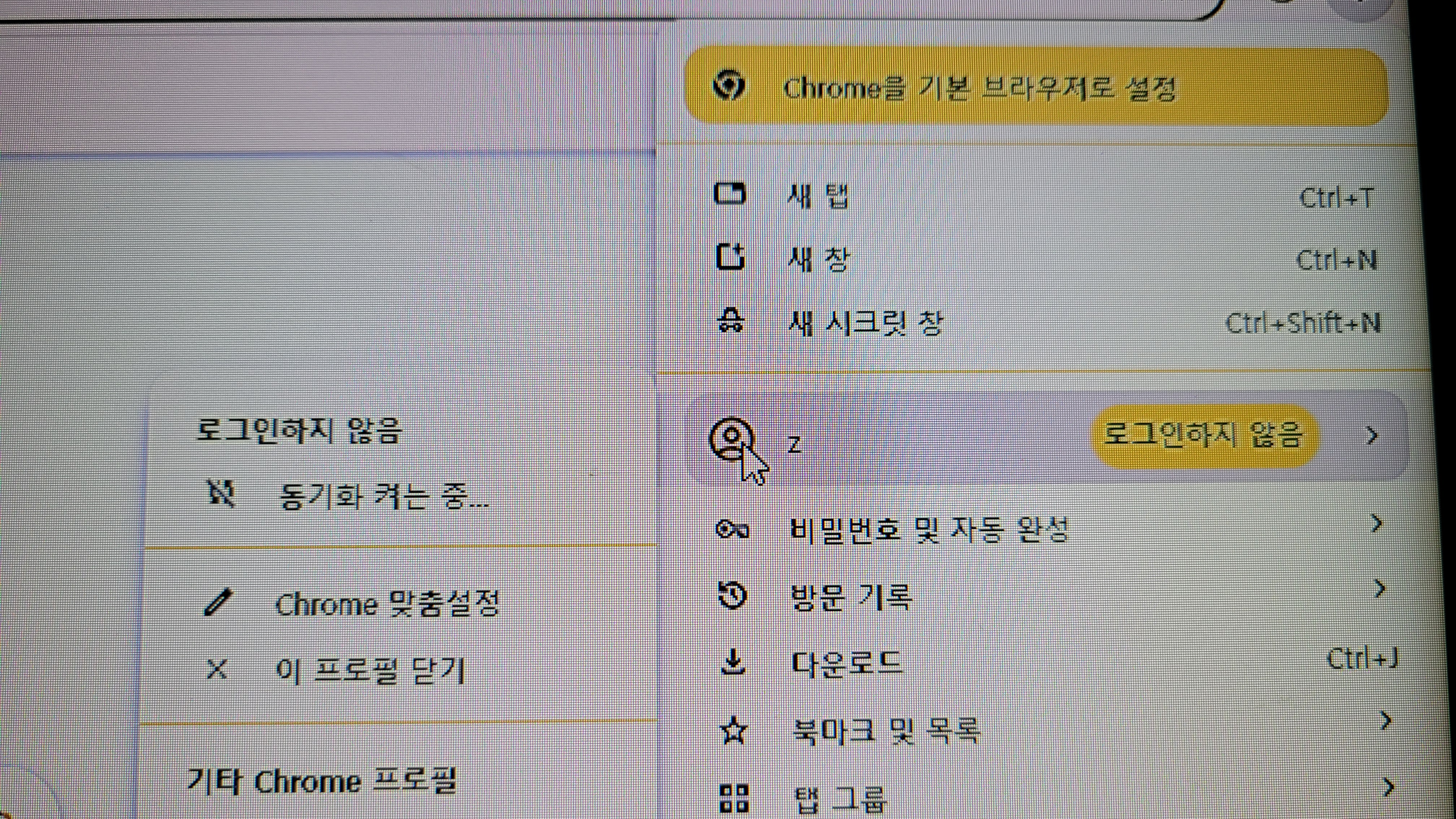 올려주신 사진을 보면, 크롬 시작 화면에 여러 개의 프로필이 나열되어 있는 것을 볼 수 있습니다. 다양한 프로필이 각각 따로 존재합니다.