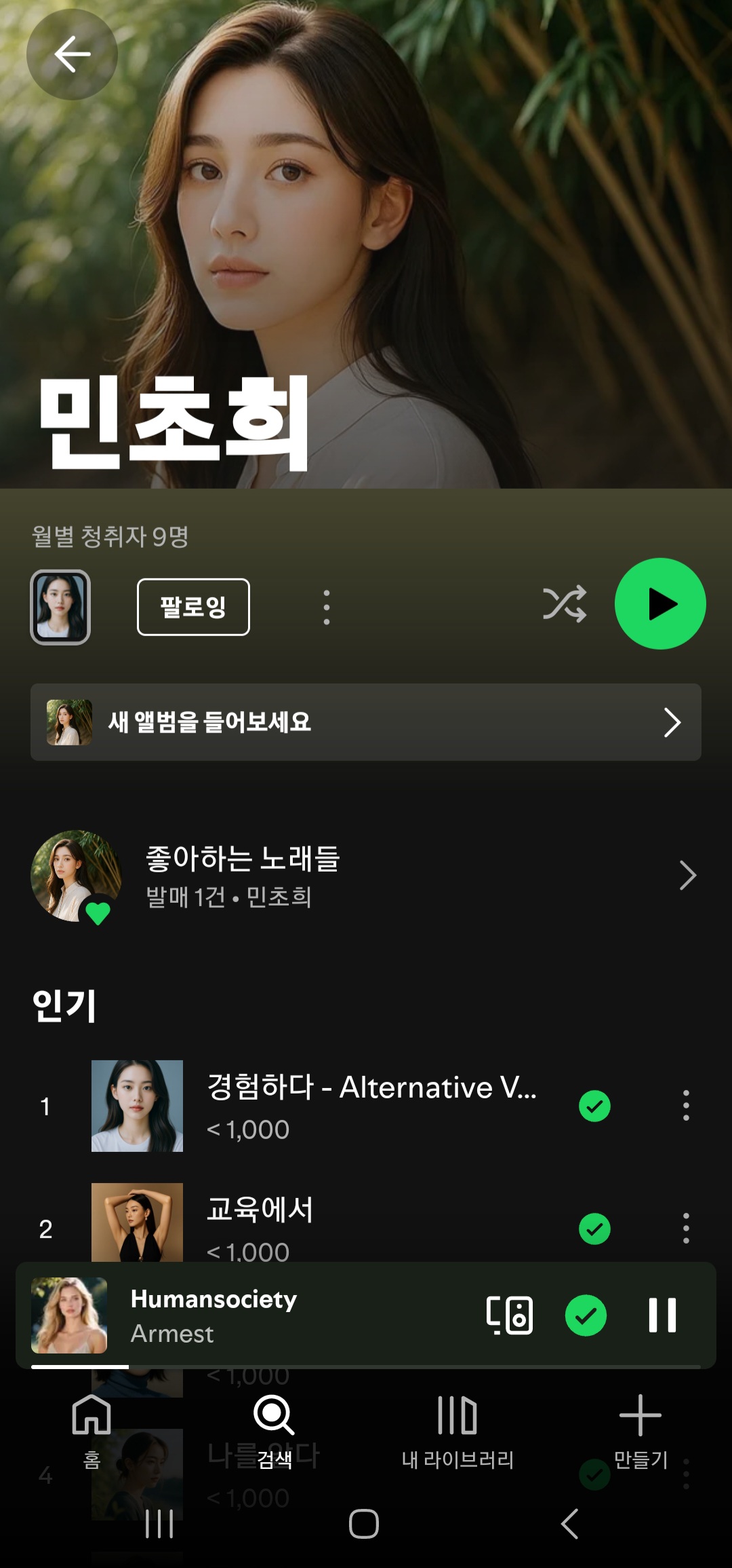 그녀의 월 리스닝 수는 1.2만 명으로, 점점 많은 사람들이 그 메시지에 공감하고 있다는 걸 보여준다. ‘Humansociety’라는 노래 제목처럼, 그녀는 인간의 사회, 인간의 가치, 인간의 사랑을 음악으로 말한다.