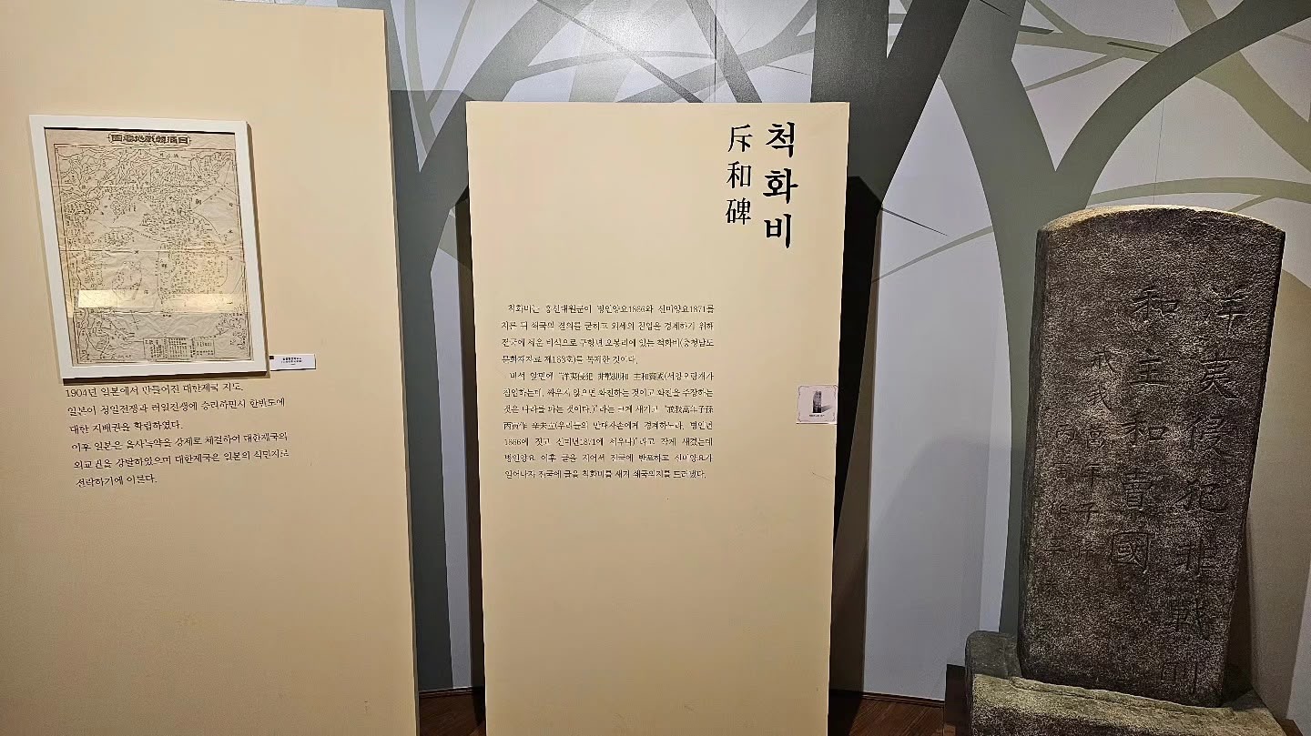 척화비는 흥선대원군이 병인양요1866와 신미양요1871를 치른 뒤 쇄국의 결의를 굳히고 외세의 침입을 경계하기 위해 전국에 세운 비석으로 구면 오봉리에 있는 척화비(충청남도 문화재자료 제163호)를 복제한 것이다.